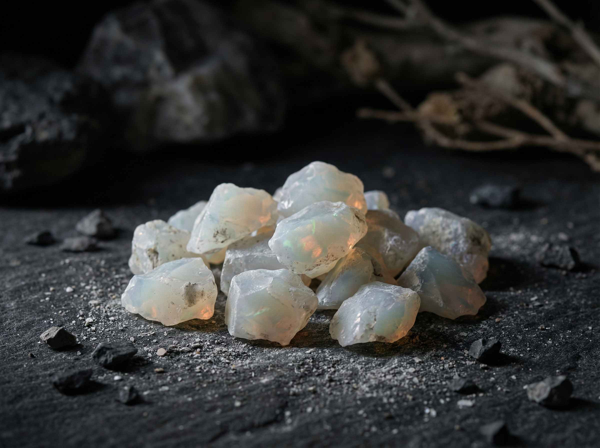 L'opale de feu blanche concassée est une pierre précieuse unique, issue d'une activité volcanique ancienne. Son jeu de couleurs fascinant est particulièrement remarquable : des nuances chatoyantes de bleu, de vert et de reflets dorés dansent sur sa surface laiteuse, même sous forme de poudre. Cette pierre rare et naturelle représente l'espoir, la pureté et le changement. Chez Monetto Rings, nous l'utilisons pour donner à nos bagues un éclat subtil et radieux ; une magie naturelle dans chaque détail.