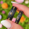 « Zeus » est une bague pour femme qui respire la force et l'élégance. Ces bagues remarquables arborent une combinaison saisissante de feuilles d'or 24 carats et d'incrustations de météorites, serties sur un robuste anneau en tungstène noir martelé.